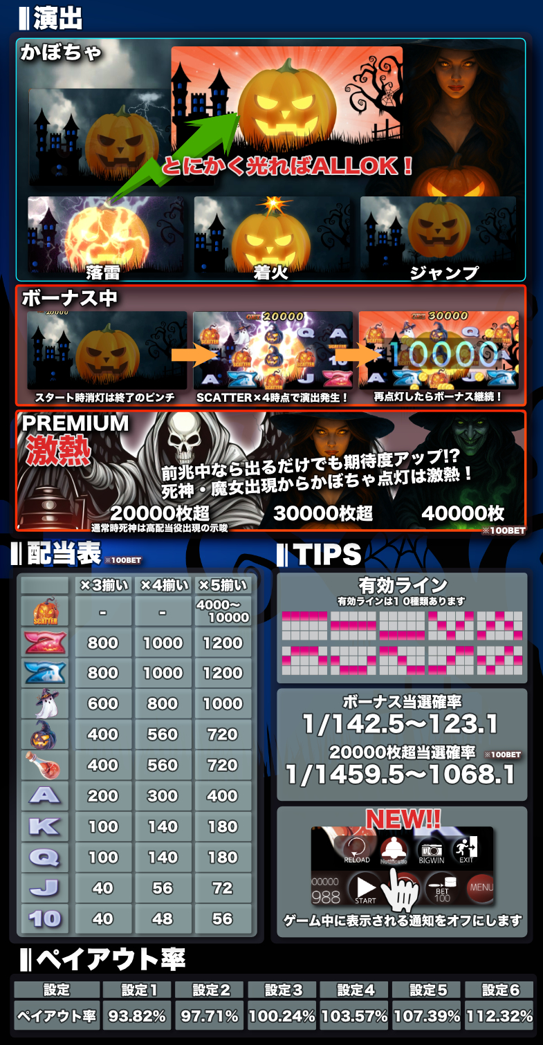 1ラインスロット「PUMPKIN STRIKE」はMAXベット専用機です。トレジャーエリアの場合は、ゲーム起動前に選択した最高BET数迄でプレイ頂けます。