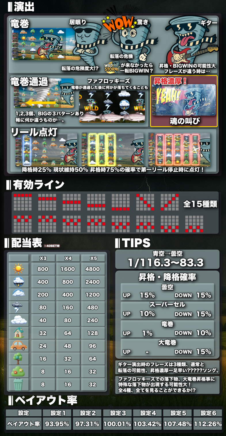 1ラインスロット「WILD STORM」を終了する際には必ずMenuタブ内の「終了」ボタンを押して下さい。ゲームのプレイ結果が表示され、獲得した経験値(EXP)がデータに反映されます。