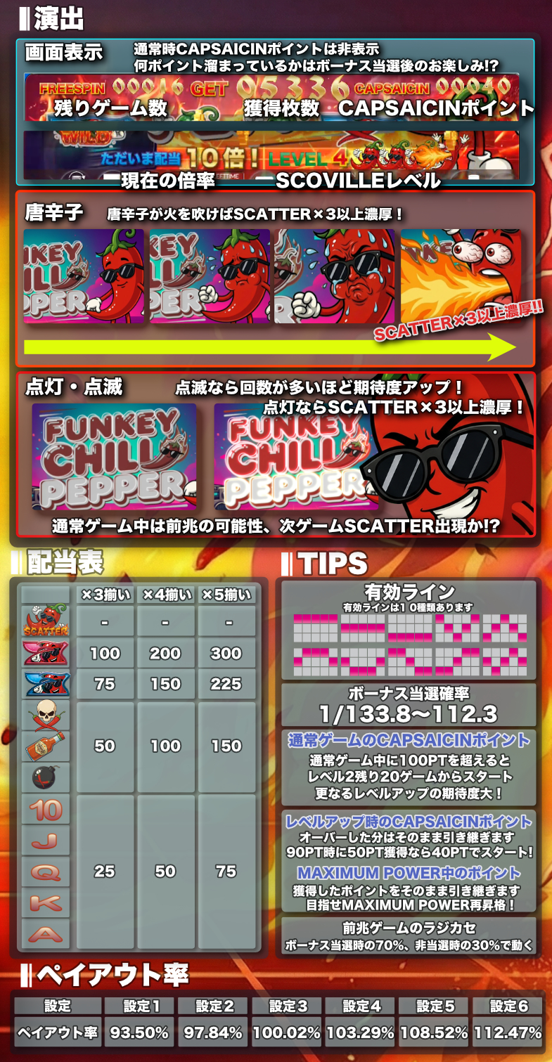 ・終了:1ラインスロット「FUNKEY CHILI PAPPER」を終了します。獲得した経験値はこのボタンを押したときに反映されます。