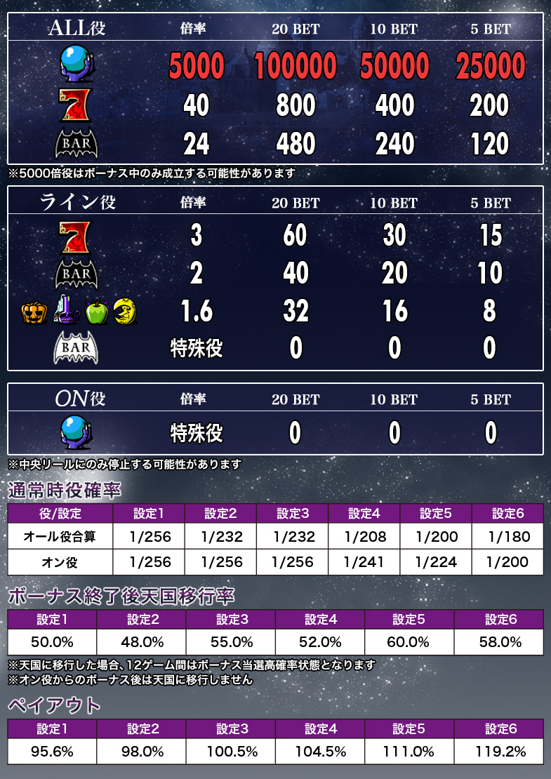 ゲーム内容は変わりませんが、ベットに応じて役の払い出し枚数が変わります。両替や清算の交換率は一定となります。